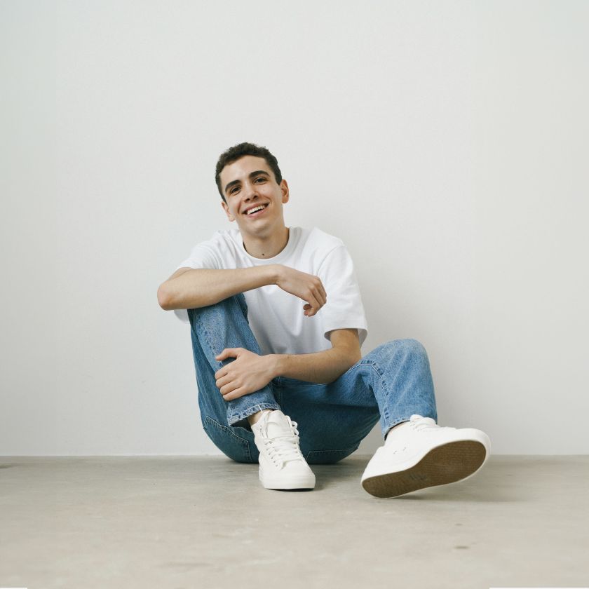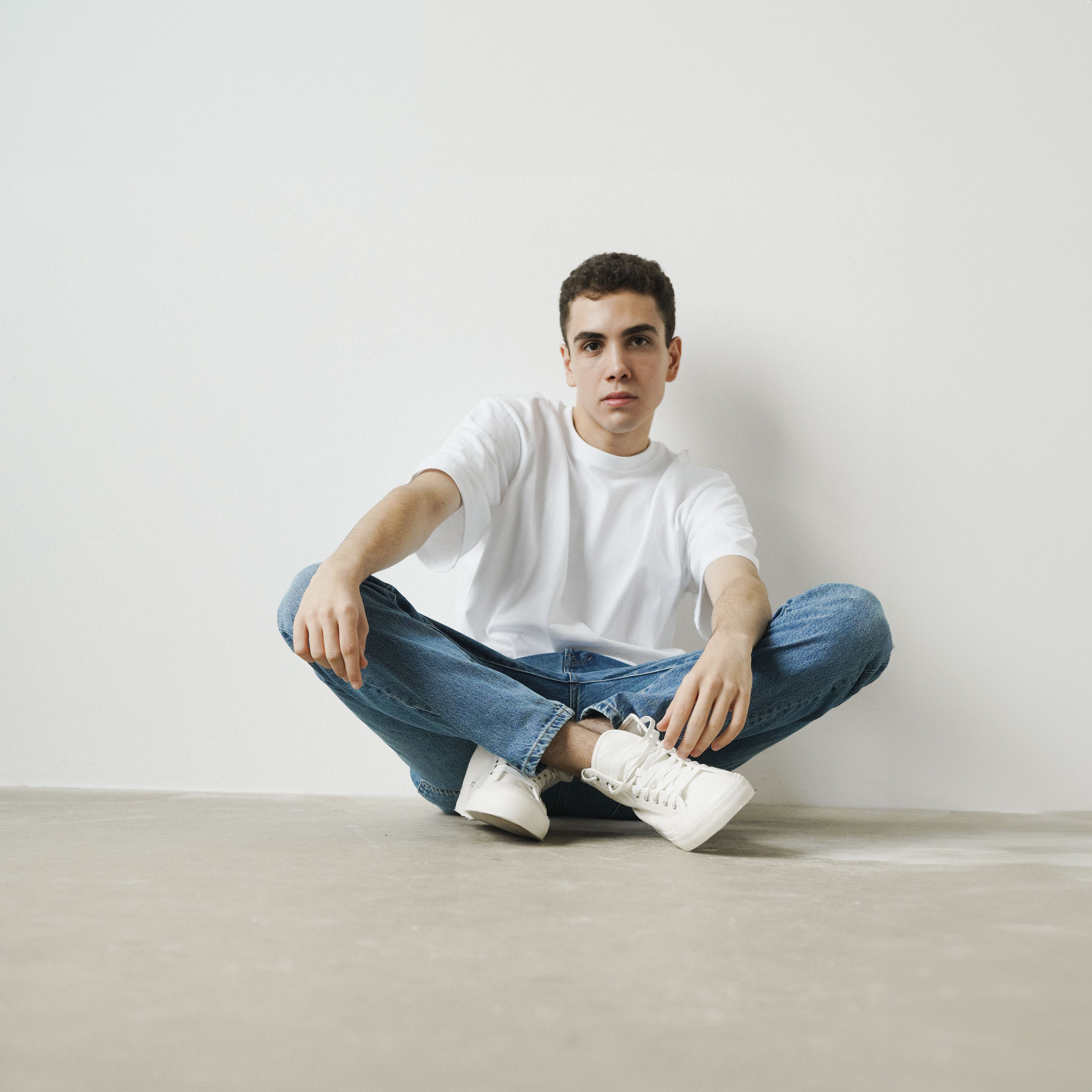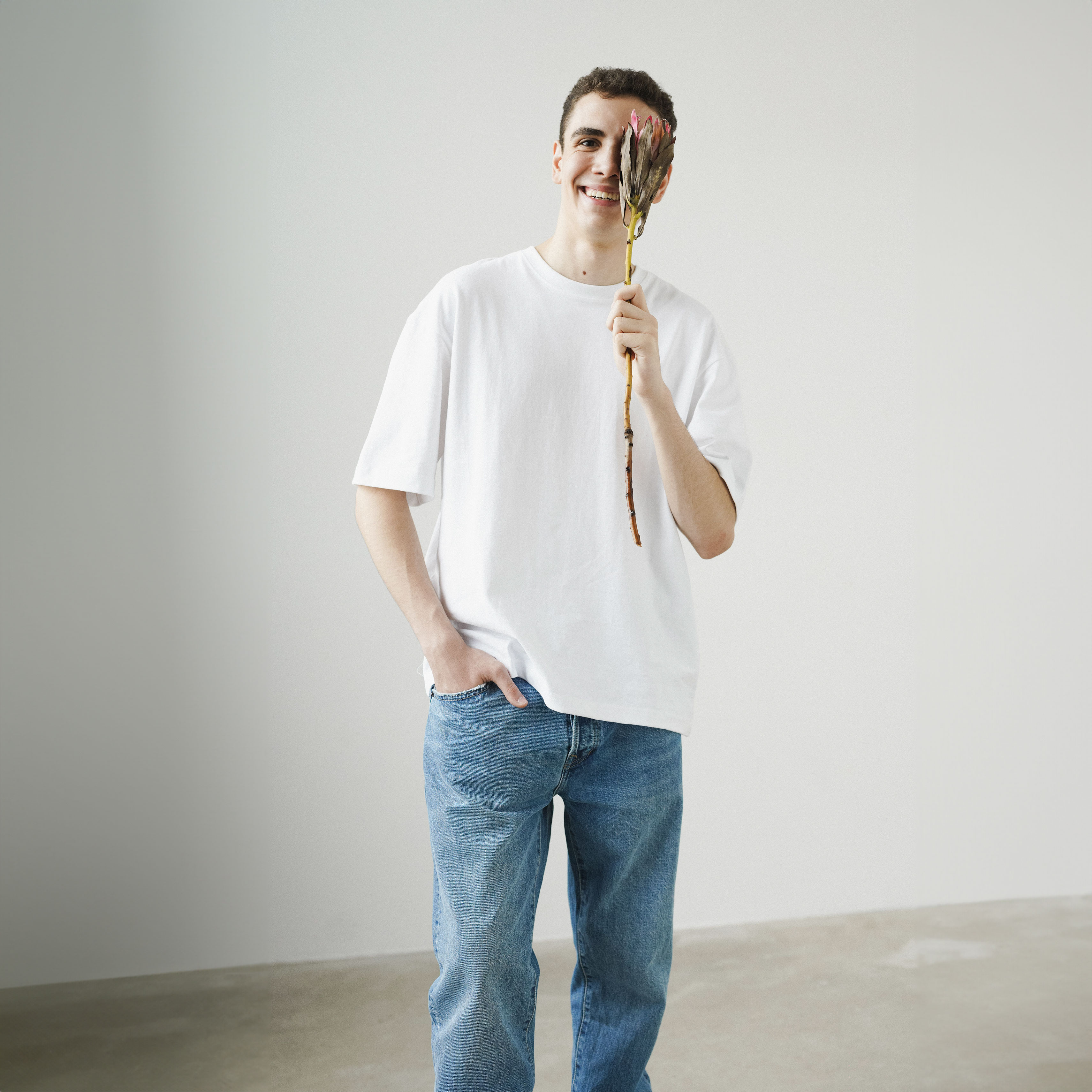 95% Cotton, 5% Polyester. Cold wash with similar colors. Handle with love.