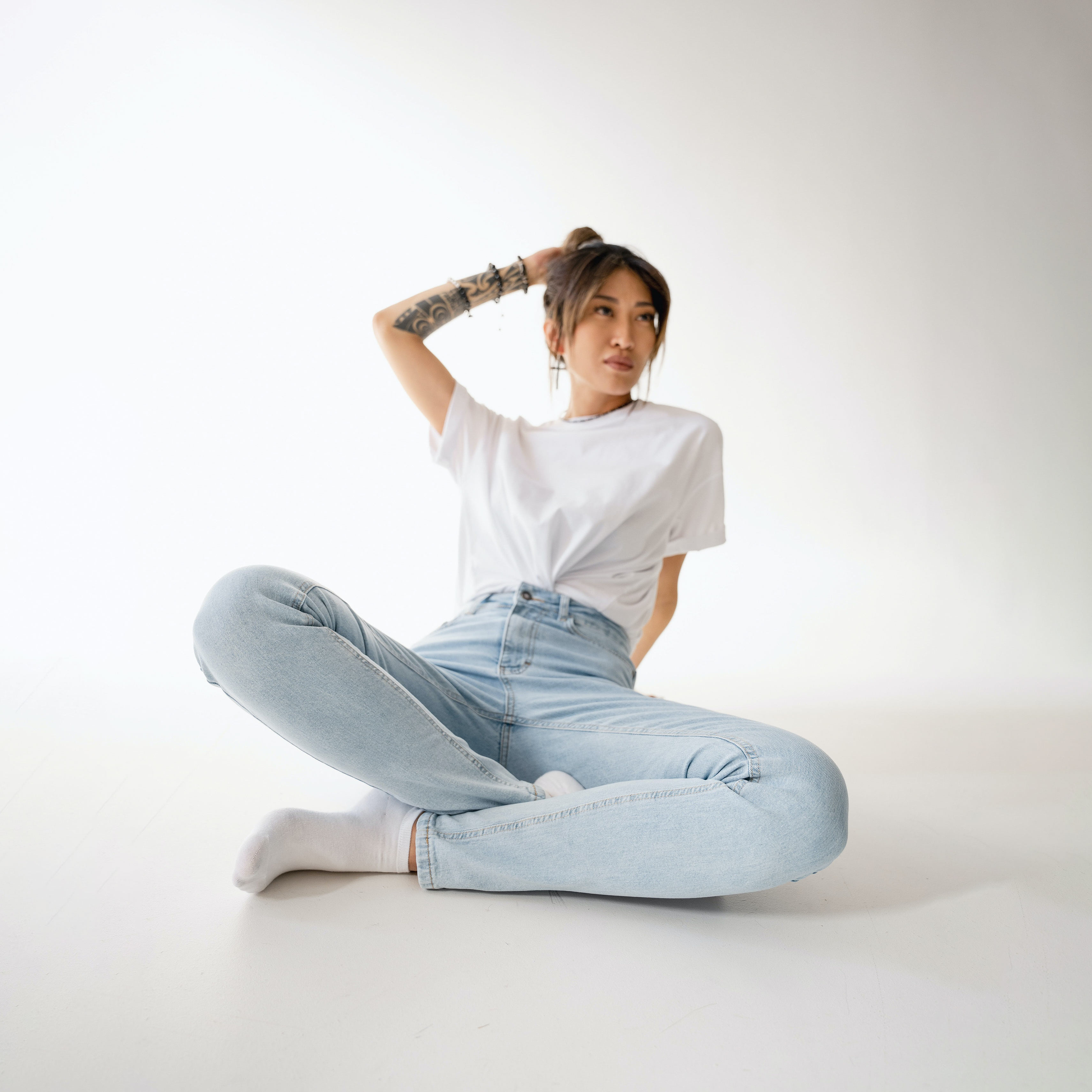 Mid-Waist White Jeans