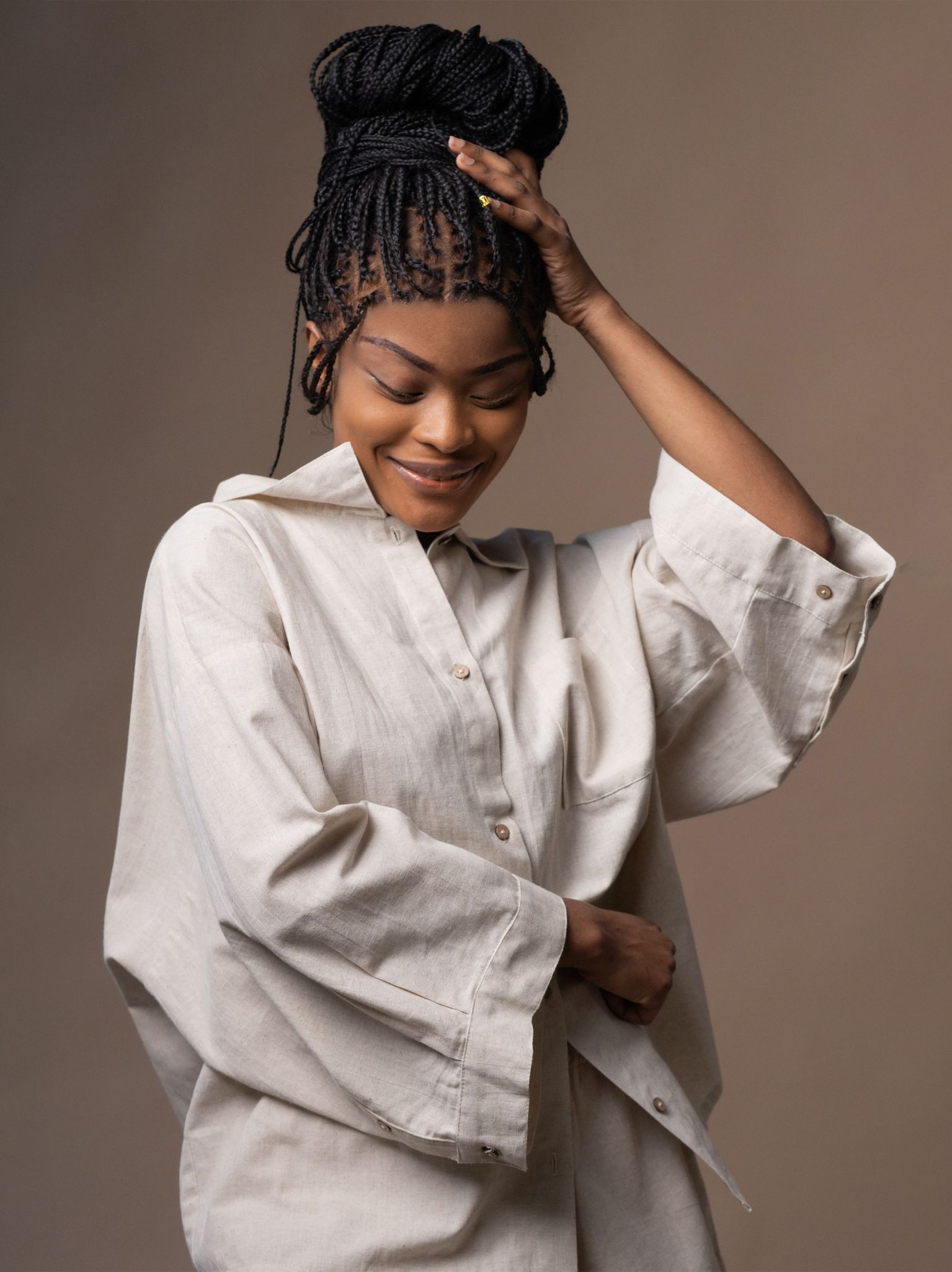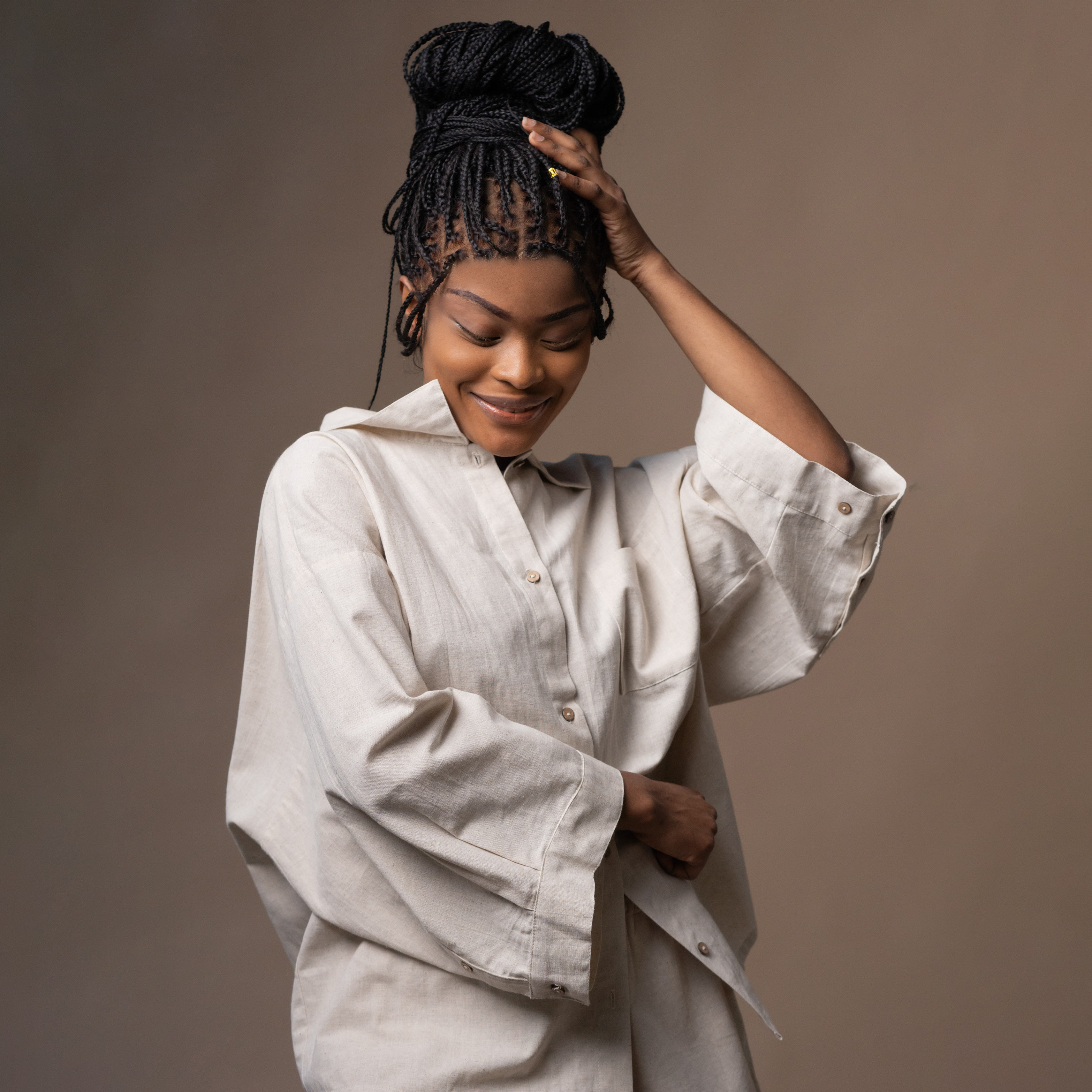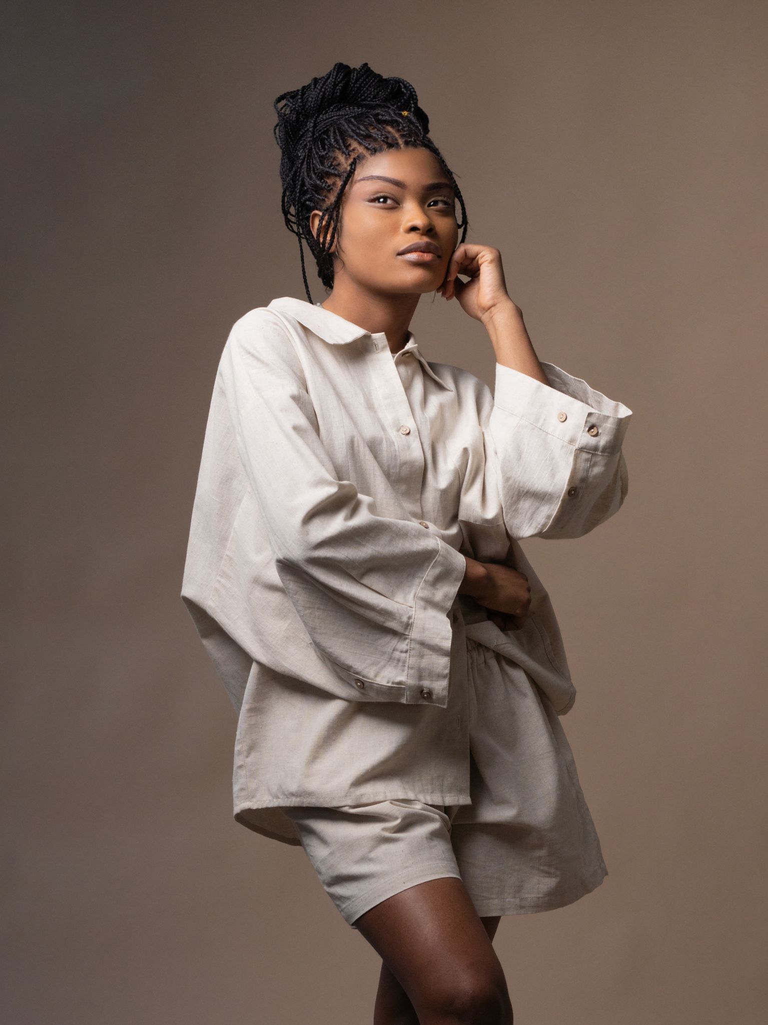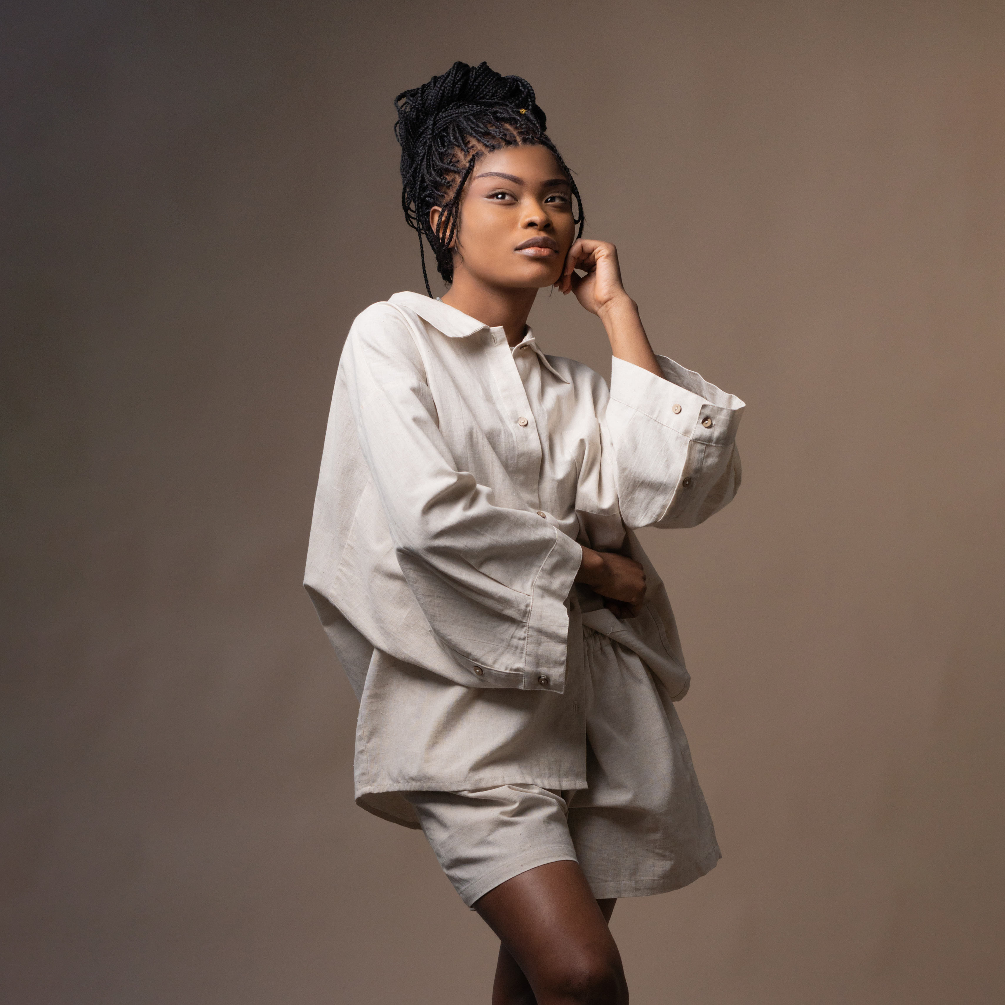 - Slightly fitted cut with straight design