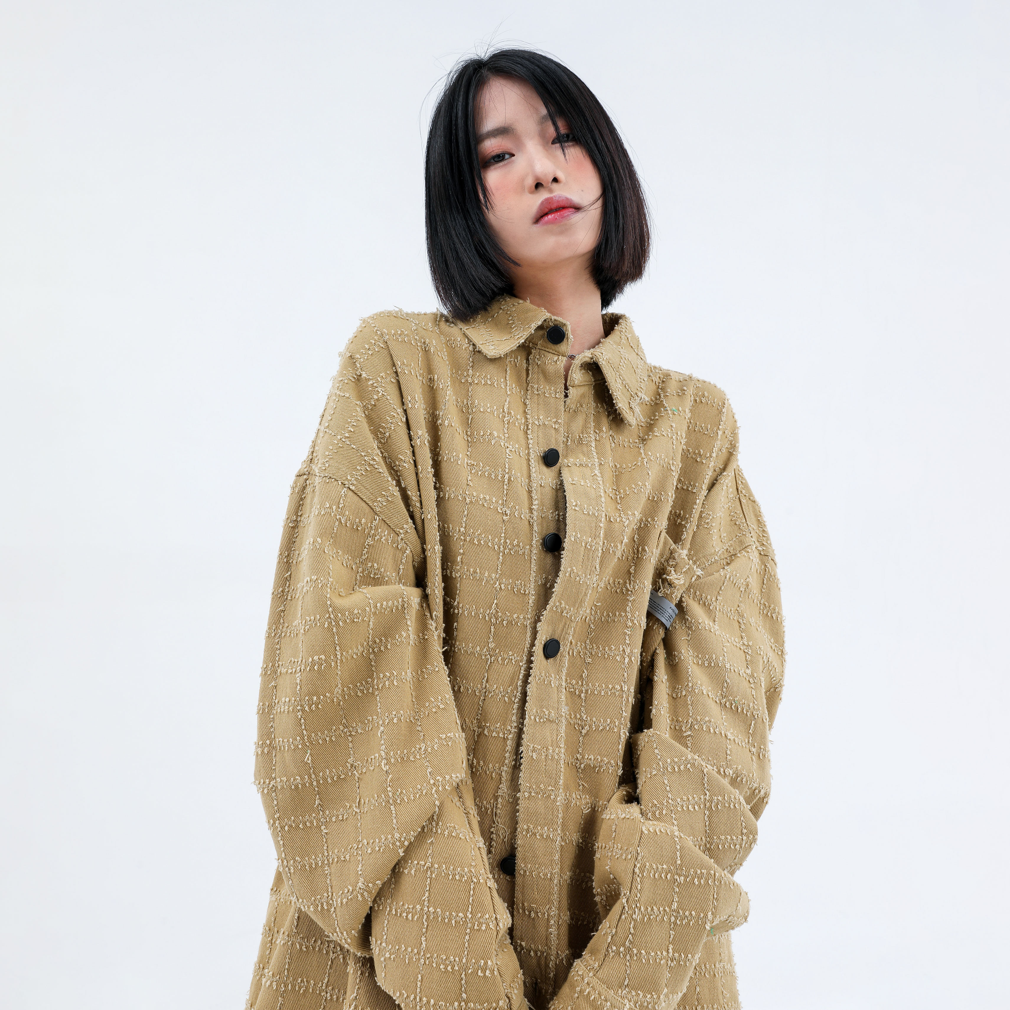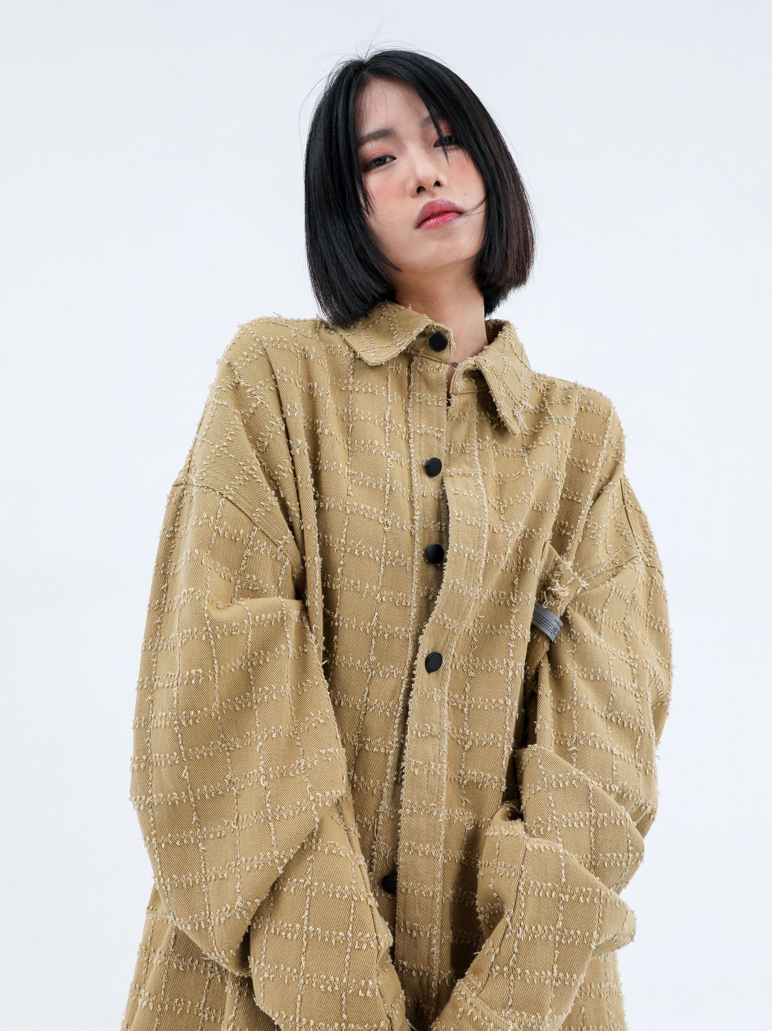 - Slightly fitted cut with straight design