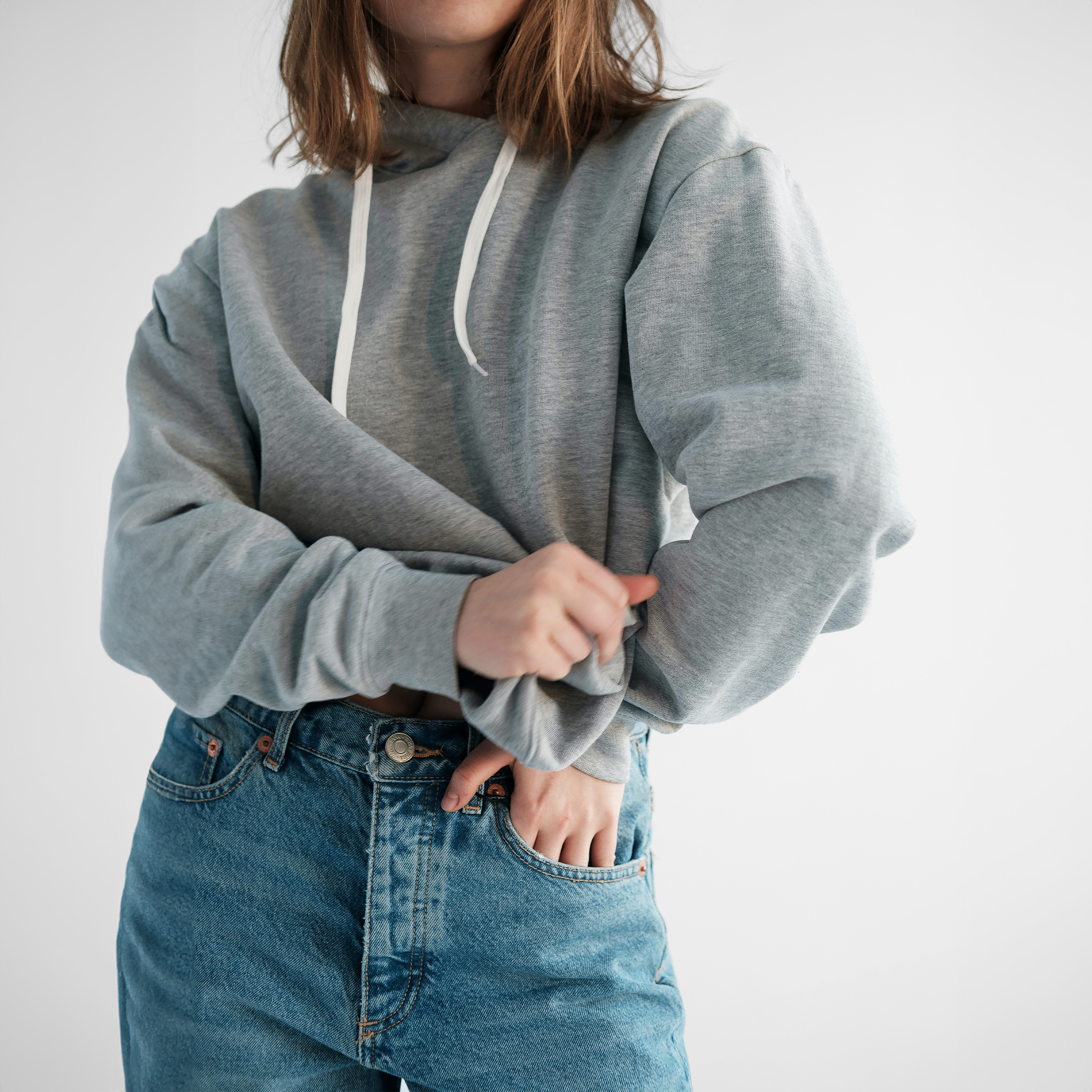 - Oversized, relaxed fit with hood and long sleeves